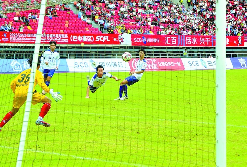 南充日报巴中电(南充市融媒体中心特派记者郑钦豪/文乐校臣/图)9月29日下午3时,2万多名球迷在巴中市体育中心见证了南充丝绸源点队客场4比0击败巴中红叶队的比赛。